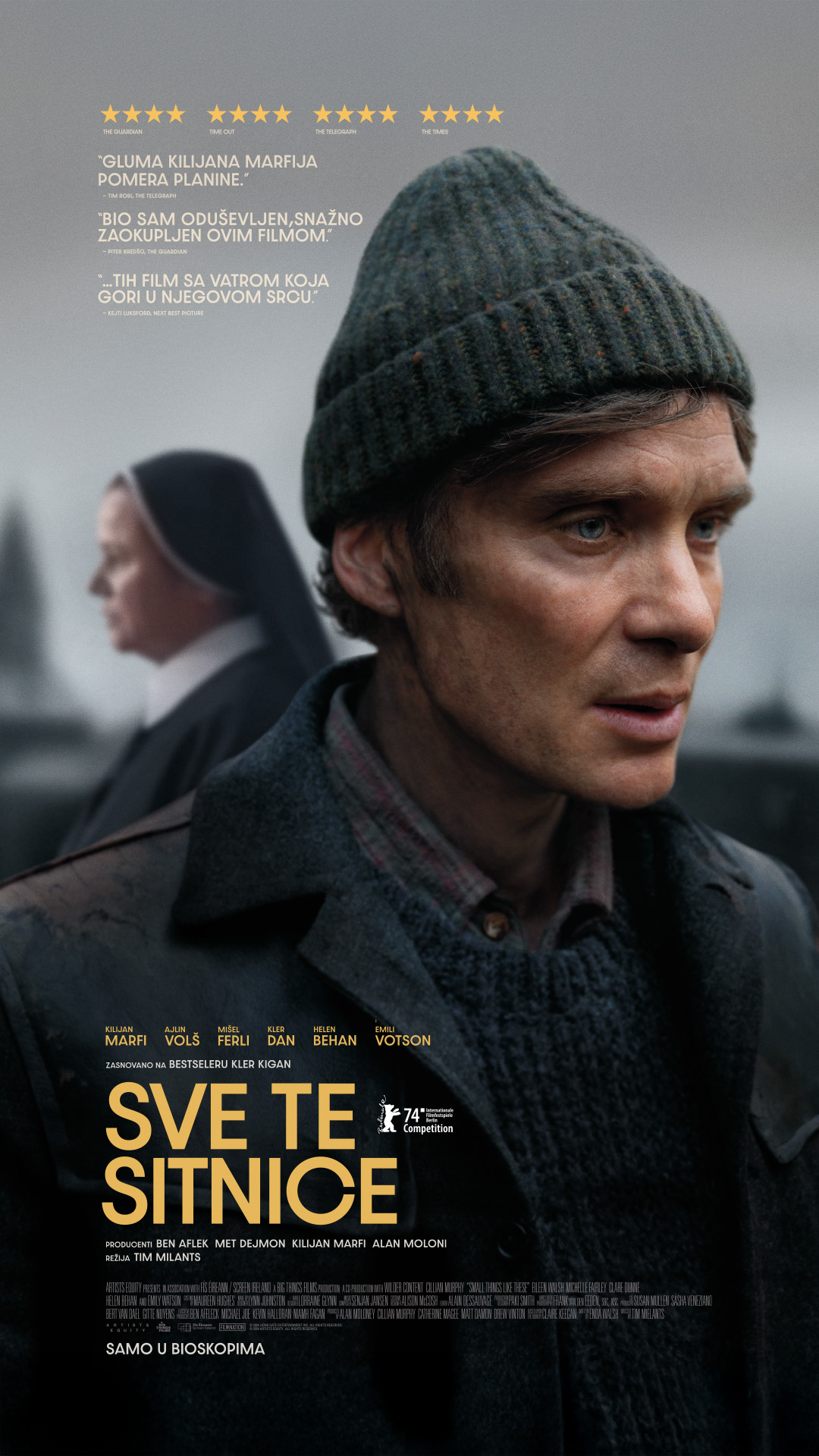 „SVE TE SITNICE” – Kilijana Marfija, dobitnika Oskara za glavnu mušku ulogu (film Openhajmer, 2023) gledaćemo u zadivljujućoj ulozi predanog oca, Bila Ferlonga, u filmu zasnovanom na istoimenom bestseleru Kler Kigan. Dok radi kao trgovac ugljem, kako bi izdržavao svoju porodicu, otkriva uznemirujuće tajne koje čuva lokalni samostan – i otkriva sopstvene istine – koje ga primoravaju da se suoči sa svojom prošlošću i saučesničkim tišinom malog irskog grada u kojem Katolička crkva ima veliki uticaj.
