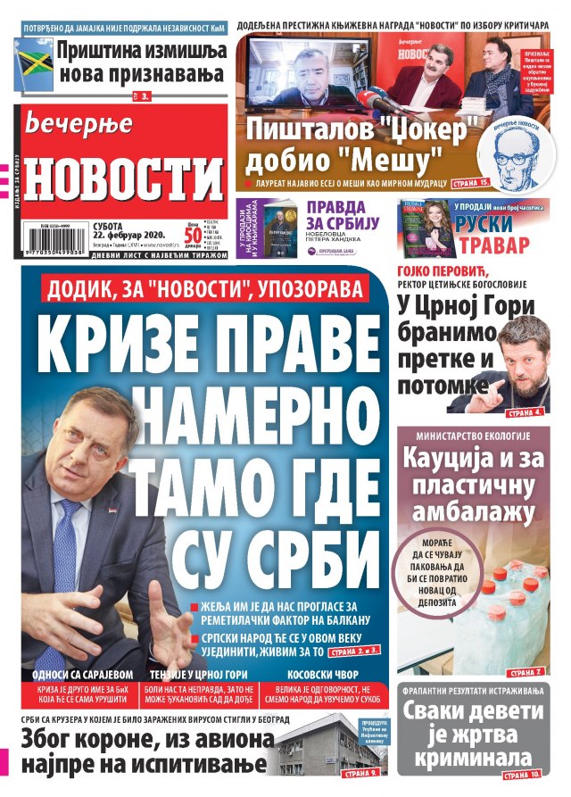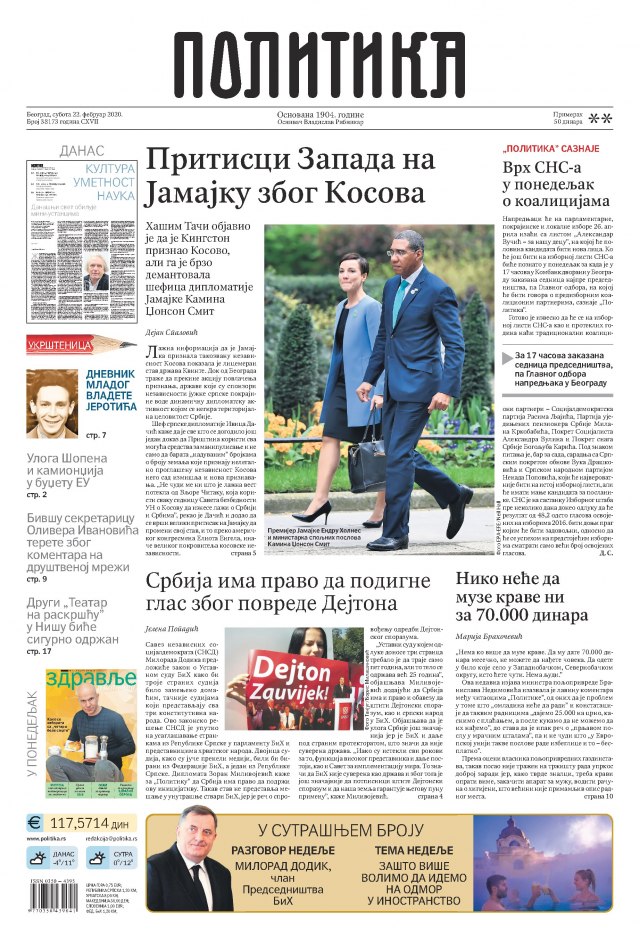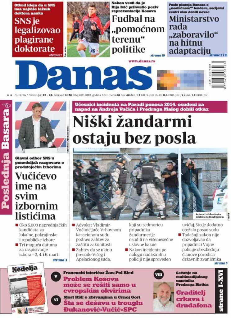 NASLOVNE STRANE DNEVNIH NOVINA: