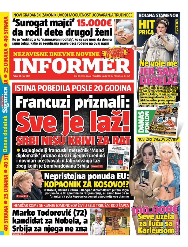IZVEŠTAJ O KOSOVU – Kancelarija za Kosovo i Metohiju Vlade Srbije predala je Skupštini izveštaj o dijalogu Beograda i Prištine pod pokroviteljstvom EU od 2013. godine do 2019. godine za potrebe sednice Parlamenta o Kosovu, 27. maja.