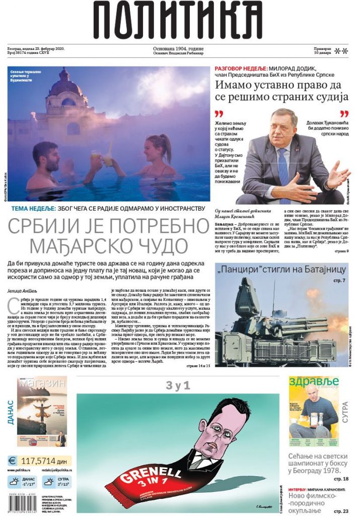POLITIKA – Tema nedelje: zbog čega se radije odmaramo u inostranstvu „Srbiji je potrebno madjarsko čudo“.