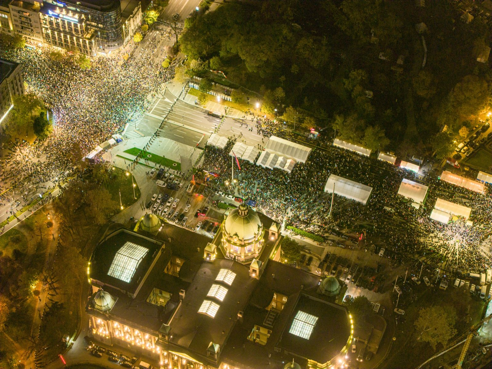 Koliko je bilo ljudi na ulicama u jeku dva skupa, pogledajte u snimku iz drona koji je podelio Pokret Kreni-promeni.