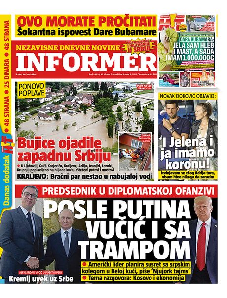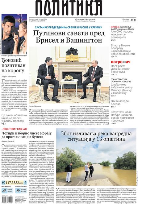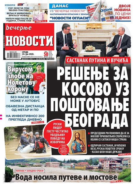 Odjek sastanka Vučića sa Putinom – Predsednik Srbije Aleksandar Vučić rekao je da je sa predsednikom Rusije Vladimirom Putinom razgovarao o svim idejama i načinima za rešavanje kosovskog problema. Putin je izjavio da se između Rusije i Srbije razvijaju veoma pragmatični i istovremeno dobri politički odnosi. Ruski predsednik je potvrdio da u oktobru dolazi u posetu Srbiji.