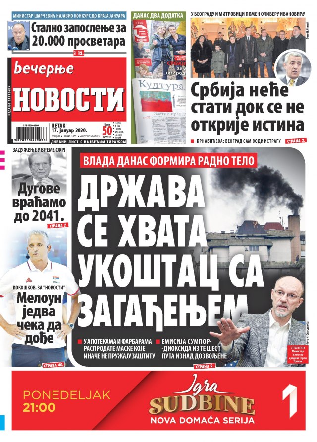 NASLOVNE STRANE DNEVNIH NOVINA: