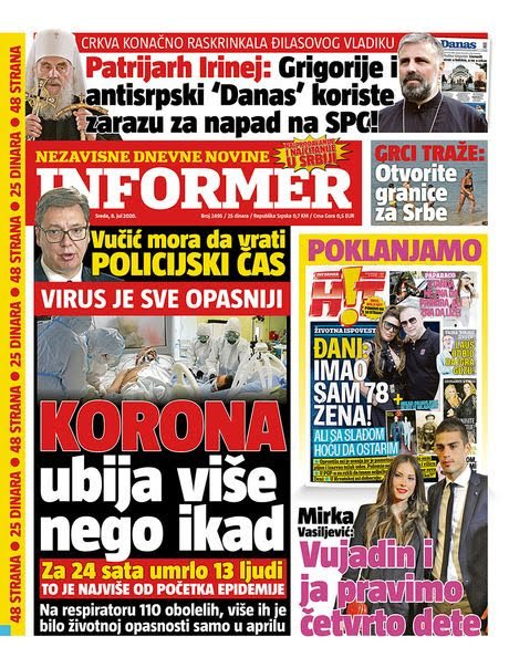 NASLOVNE STRANE DNEVNIH NOVINA: