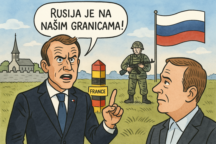 „Francuska nije ostrvo“, upozoravao je Emanuel Makron 20. februara ove godine na društvenim mrežama. „Strazbur–Ukrajina, to je otprilike 1.500 kilometara, nije baš daleko.“ Alzas posle Donbasa? Preterano alarmantni ton francuskog predsednika možda je izazvao osmeh kod njegovog ministra odbrane Sebastijana Lekorna, koji – kao i većina ozbiljnih posmatrača – odbacuje takav scenario: „Biti nuklearna sila logično znači da se ne nalazimo u istoj poziciji kao država koja to nije.“ Jedan od njegovih prethodnika, Erve Moren, postavljao je pitanje u Journal du dimanche od 9. marta: „Da li zaista treba da uznemiravamo naše građane govoreći im, manje-više, da je ultimativna pretnja na granicama Francuske – Rusija?“