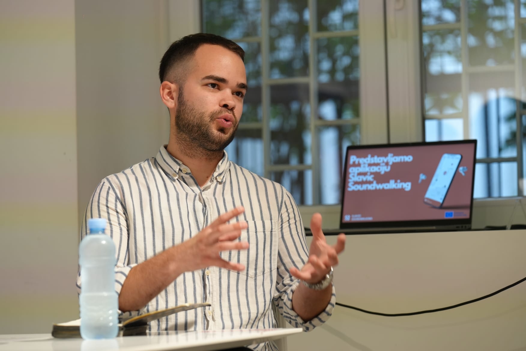 U subotu, 29. juna u 18 časova polazeći sa zajedničke početne pozicije u centru Beograda (kod hotela Moskva), zahvaljujući korišćenju mobilne aplikacije i sopstvenih slušalica, učesnici_e će se tokom vođene ture zajedno prošetati kroz grad i upoznati sa aplikacijom i toponimima grada Beograda iz nove perspektive, premijerno slušajući osam audio-priča nastalih u okviru projekta. Pored Terazija (Hotel Moskva), zvučni program pratićemo i na još 7 toponima našeg grada: Nušićeva ulica, Atelje 212, Palilulska pijaca, RTS, Park Tašmajdan, Glavna pošta, Crkva svetog Marka.