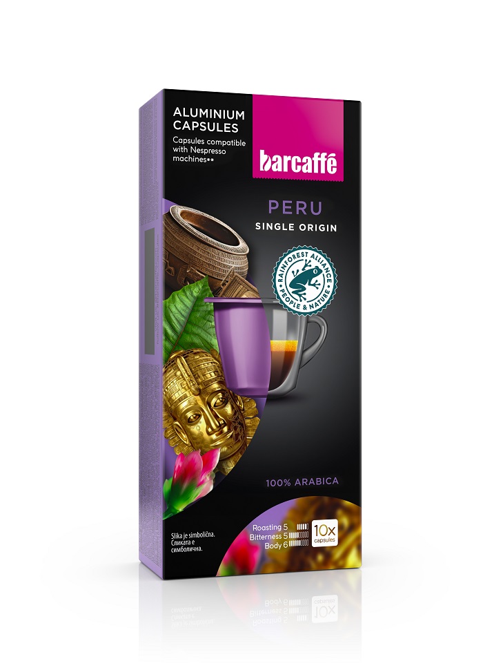 Sada imate priliku da se upustite u istraživanje novog zavodljivog i punog ukusa koji pruža Barcaffè Single Origin Peru, kafa kompatibilna sa Nespresso aparatima. Njena somotna tekstura sa neobičnom kombinacijom karamele i citrusnih nota u kojima se prepliću suptilne arome orašastih plodova, neće vas ostaviti ravnodušnim. Priuštite sebi pravo gastronomsko putovanje u egzotični Peru, jednu od zemalja porekla najkvalitetnijih sorti kafe arabika na svetu.