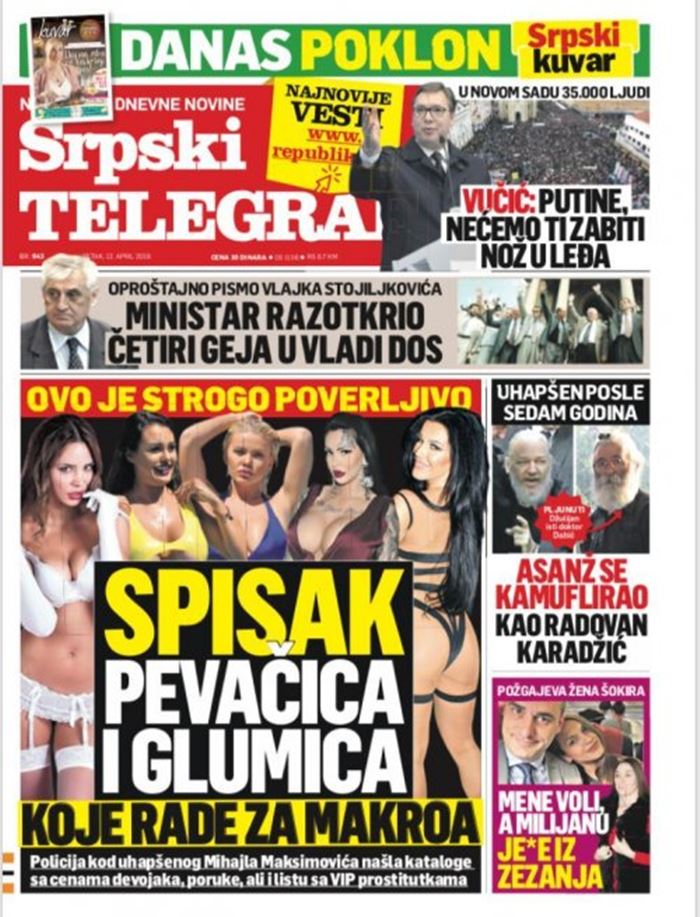 ZAŠTO JE ZABRANJEN NASTUP „DJ ŽEKSA“ – „Policija je zabranila skup vlasnika TV Pink Željka Mitrovića, koji je najavljen u subotu 13. aprila“, kad i veliko protestno okupljanje opozicije, „jer bi mogao da irititira one koji se ne slažu sa njim“, izjavio je ministar unutrašnjih poslova Nebojša Stefanović.