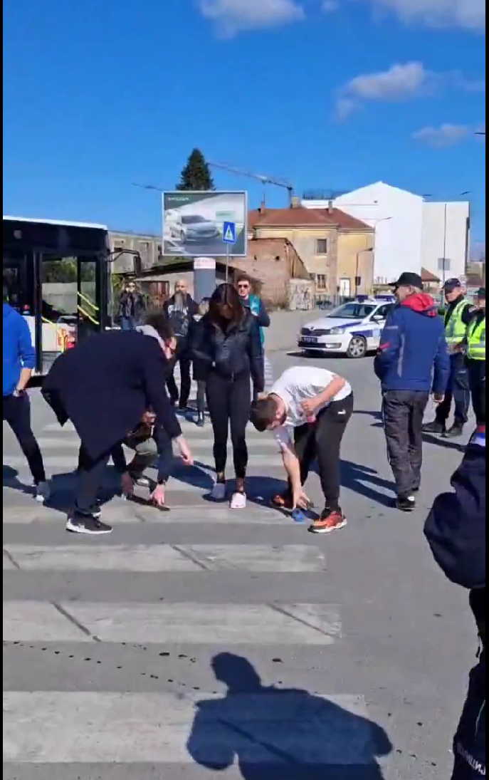 Policija koja je bila prisutna, nije intervenisala, jer je, kao je preneo Ozonpress, dogovoreno da se nakon 16 minuta ćutnje za stradale u Novom Sadu, odblokira Autobuska stanica.