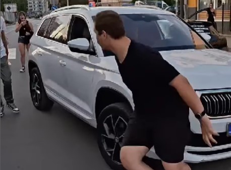 Student koji je pokušao da zaustavi autombil na blokiranoj raskrsnici nije povređen, a na snimku se vidi kako ga nakratko automobil „nosi“ na haubi.