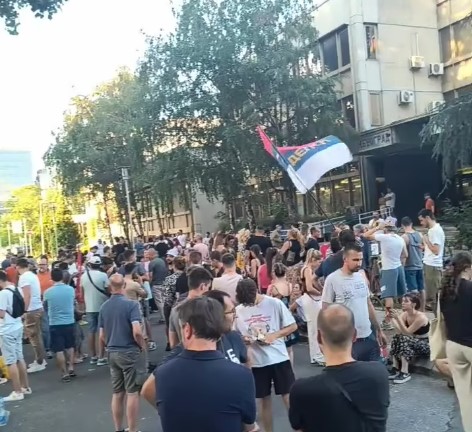 Ispred Policijske stanice Novi Beograd održava se protest na koji su pozvali studenti u blokadi zbog hapšenja njihovih kolega zbog navodnog napada na Miloša Pavlovića, studenta koji „želi da uči“, objavio je portal Nova.rs.