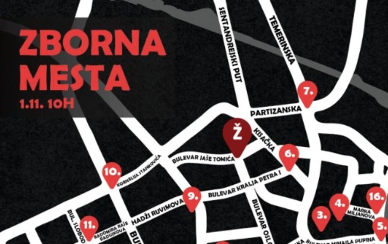 Objavljena je mapa lokacija na kojima su građani pozvani da se okupe i krenu ka Novosadskoj železničkoj stanici uoči komemorativnog skupa 1. novembra.