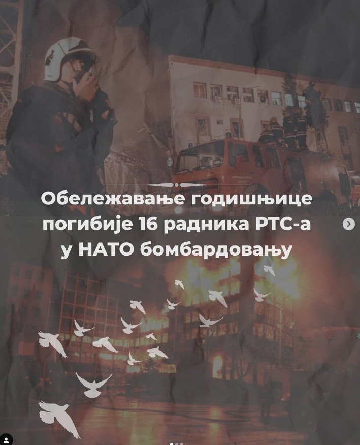 Pre 26 godina, u noći između 22. i 23. aprila, NATO je bombardovao zgradu RTS-a i ubio šesnaestoro radnika ove kuće. Prvi put je u istoriji ratovanja pogođena jedna medijska kuća koja je prethodno proglašena za legitimni vojni cilj. Zgrada RTS-a bombardovana je tokom emitovanja vesti u dva sata i šest minuta.