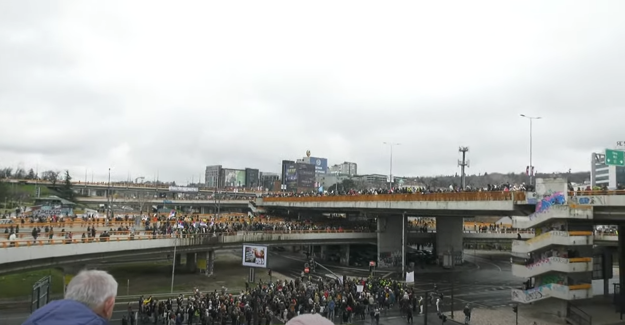 Nakon ukupljanja kod Palate pravde u Savskoj ulici oko 13 časova, studenti i građani uputili ka Mostarskoj petlji oko 13:30.