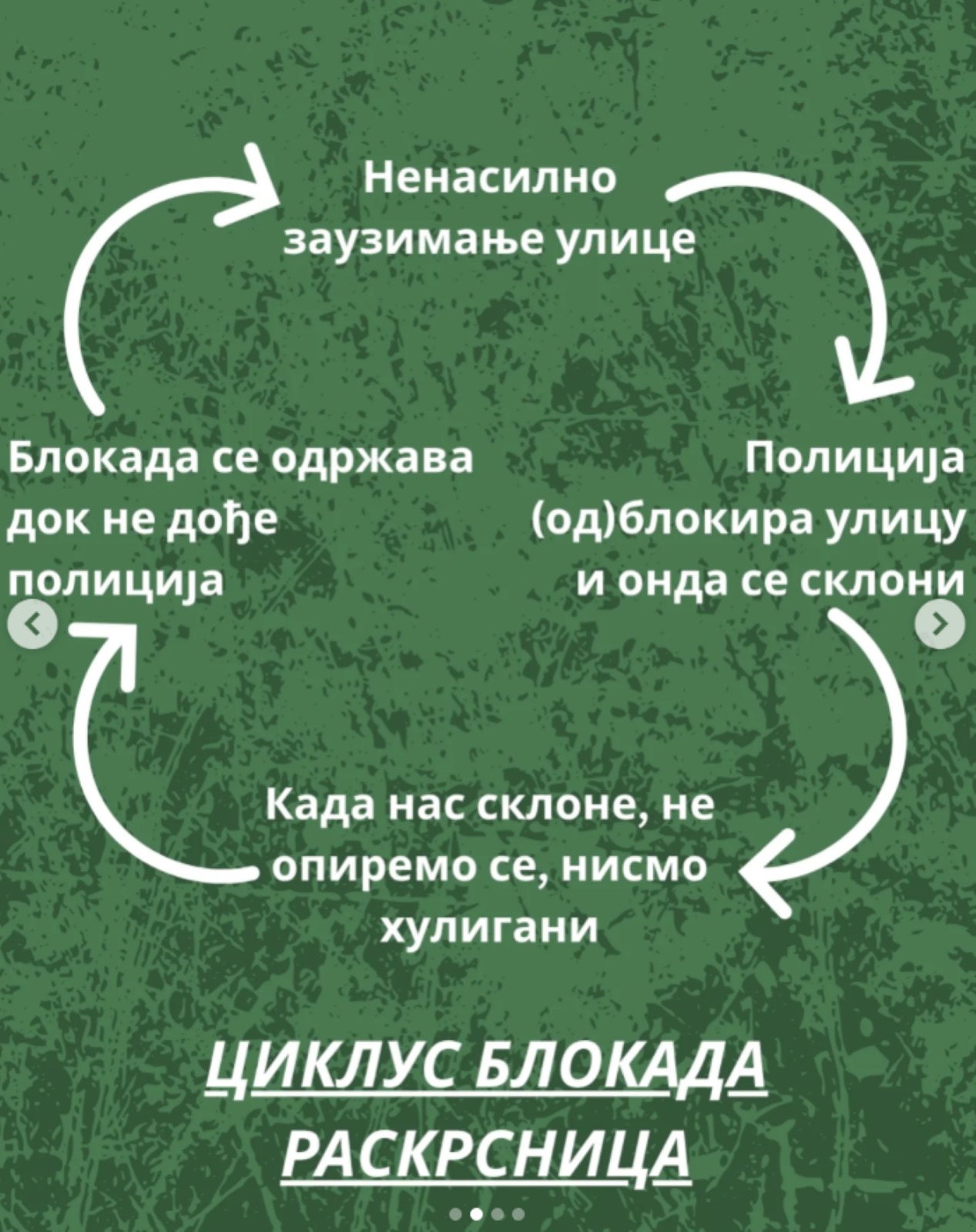 Studenti u blokadi objavili su sinoć na svom Instagram profilu ilustraciju kojom objašnjavaju kako treba da izgleda „ciklus blokada raskrsnica“.
