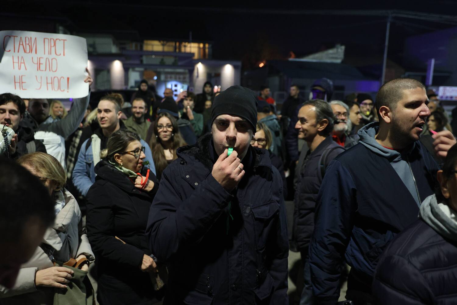 Istovremeno, 15. dan se nedaleko od raskrsnice gde protestuju građani, okupilo i oko 50 pristalica vladajuće Srpske napredne stranke (SNS) ispred stranačkih prostorija, javlja reporterka agencije Beta.