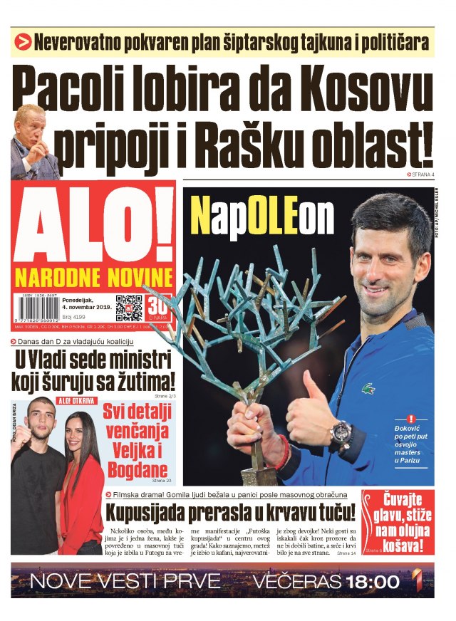ĐOKOVIĆ OSVOJIO MASTERS U PARIZU – Najbolji teniser sveta Novak Đoković osvojio je petu titulu na Mastersu u Parizu. Srbin je u velikom finalu savladao mladog Kanađanina Denisa Šapovalova sa 6:3, 6:4.
