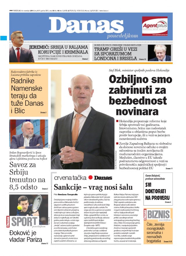 NASLOVNE STRANE DNEVNIH NOVINA: