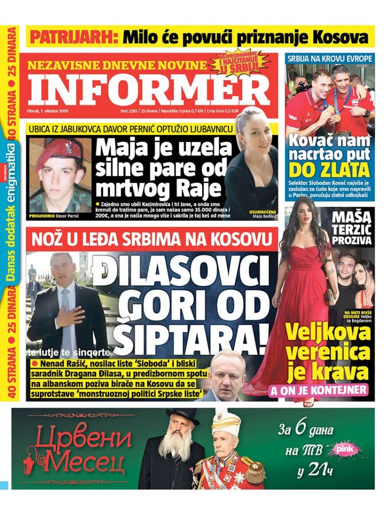 RADA TRAJKOVIĆ: „MAFIJA JE DRŽAVNI PROJEKAT NA KOSOVU“ – Kandidatkinja na listi koalicije „Sloboda“, Rada Trajković, smatra da bi pobeda Srpske liste na tamošnjim oktobarskim izborima značila da je sada „mafija državni projekar Srbije na Kosovu“, objavio je portal KoSSev.