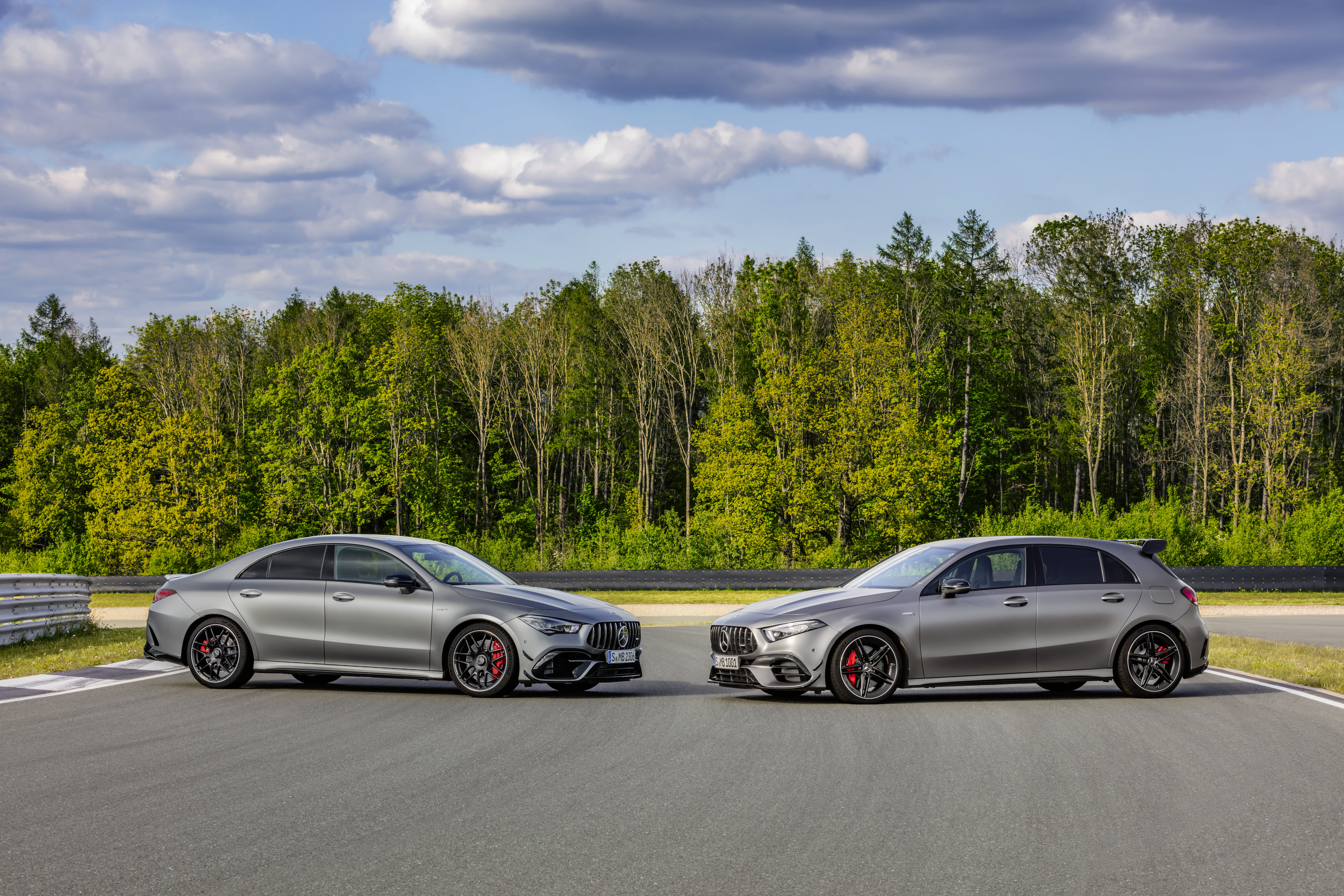 Izvanredne performanse, vrhunska dinamika vožnje, izražajan dizajn – nova Mercedes-AMG kompaktna sportska vozila A 45 4MATIC+/ A 45 S 4MATIC+ (kombinovana potrošnja goriva 8.4-8.3 l/100 km; kombinovana CO2 emisija 192-189 g/km) i CLA 45 4MATIC+/ CLA 45 S 4MATIC+ (kombinovana potrošnja goriva 8.3-8.1 l/100 km; kombinovana CO2 emisija 189-185 g/km) ponovo su potvrdila vodeće pozicije u svojim segmentima. Oni nepogrešivo nastavljaju uspešnu priču svojih prethodnika, postavljajući nove standarde. Dostupne u dve varijante izlaza i obrtnog momenta, potpuno novo razvijeni dvolitarski motor je najsnažniji četvoro cilindarski motor na svetu, proizveden za serijsku proizvodnju. Čak i osnovni model sa 285 kW (387 kS) jači je od svog prethodnika. S-varijanta sa 310 kW (421 Nm) koristi se na mnogo višim klasama vozila. Novi menjač AMG SPEEDSHIFT DCT-8G sa dvostrukim kvačilom i osam brzina garantuje savršene sekvence u svim situacijama u vožnji, kao i brzu promenu stepena prenosa koja se meri u milisekundama. Aktivni, potpuno varijabilni pogon na sva četiri točka AMG Perfomance 4MATIC+ distribuira snagu na točkove zadnje osovine selektivno pomoću sistema AMG TORQUE CONTROL – za vrhunsku vuču i spektakularni drift mode. Ovo je moguće zahvaljujući novom diferencijalu zadnje osovine koji sadrži dve višelamelaste spojnice – po jedna za svaki točak.