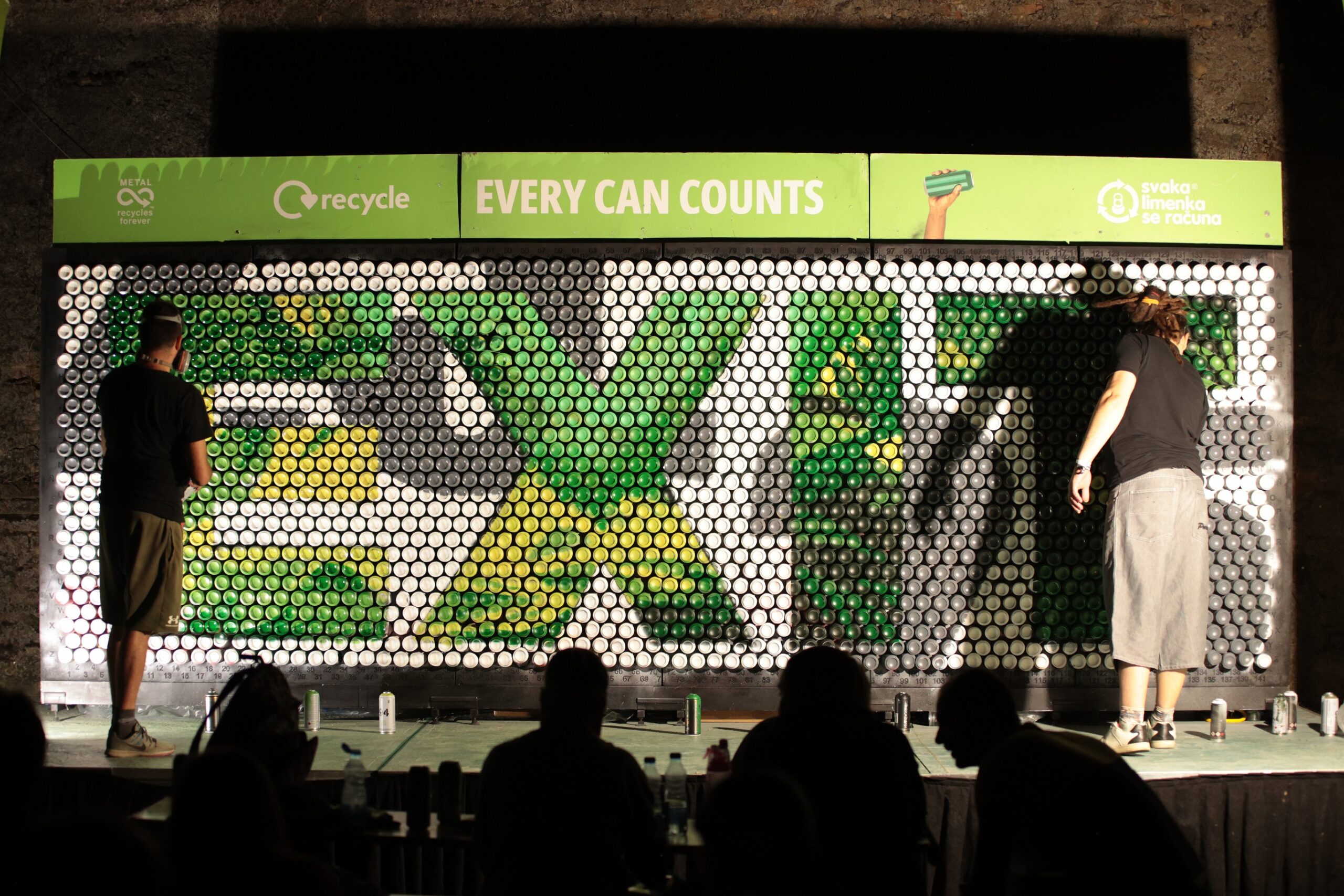 Pored naprednih sistema prikupljanja ambalaže, pažnju posetilaca privukle su i vizuelne instalacije projekta – prepoznatljiva Pixelata, umetnički mozaik od recikliranih limenki, , kao i svetleća instalacija “I Love Music”, koja je kroz svetlosne efekte i brojač isticala broj prikupljenih limenki.