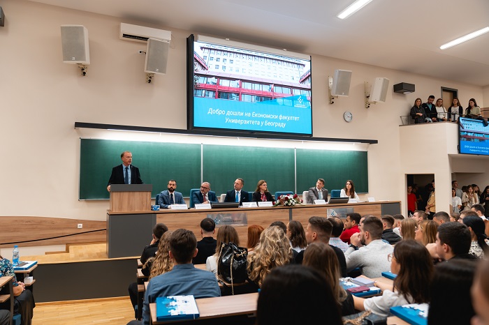 Prof. dr Đorđe Kaličanin, predsednik Saveta Ekonomskog fakulteta podelio je sa studentima radost što je pred njim mlada digitalna generacija i dodao ,,Vi ste napravili pravi izbor, a to je Ekonomski fakultet Univerziteta u Beogradu i znajte da ste u dobrom društvu“ rekao je Kaličanin.
