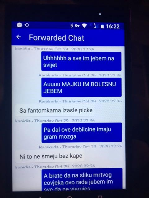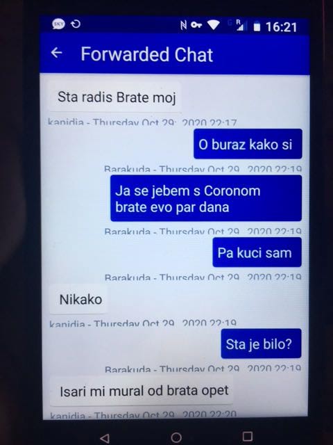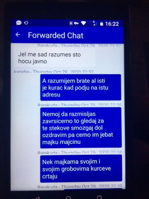 „Vreme 15:16:47 NN lice na ovu grupu šalje sliku murala: Zdravko pi*ko je*emo ti sve“