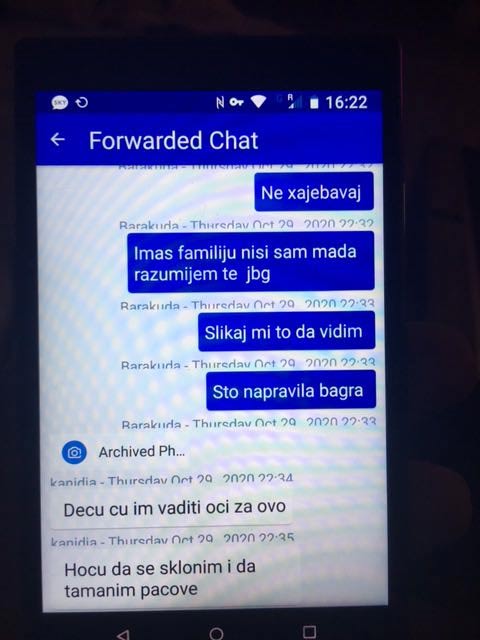 „15:12:33 : „Škoda i rendž su vraćene i to je bilo Čipi tvoje zato ništa nisi pričao za to“.