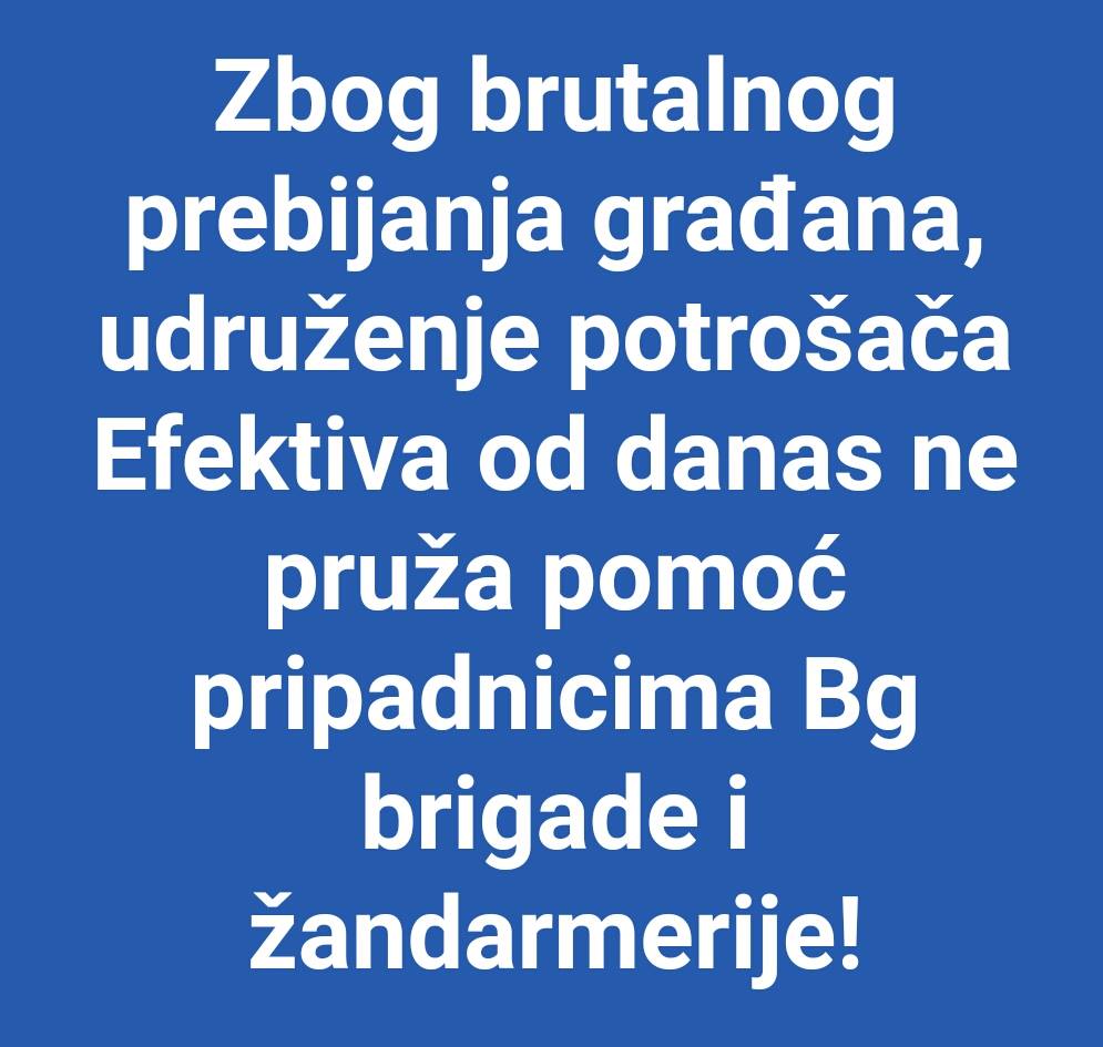 Društvo Organizacija potrošača „Efektiva“ od danas ne pruža pomoć žandarmeriji: „Zbog brutalnog prebijanja građana…“ Nedeljnik.rs