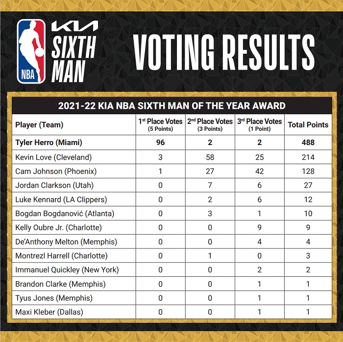 Biz news Bek Majamija Tajler Hiro je dobio priznanje za najboljeg šestog igrača u sezoni 2021-22. Biznews