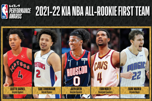 Biz news Skoti Barns (Toronto), Kejd Kaningem (Detroit) i Ivan Mobli (Klivlend) predvode prvi tim Kia NBA Rukija 2021-22. Biznews