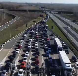 Pogledajte kilometarsku kolonu na auto-putu kod isključenja za Novi Sad (VIDEO IZ DRONA)
