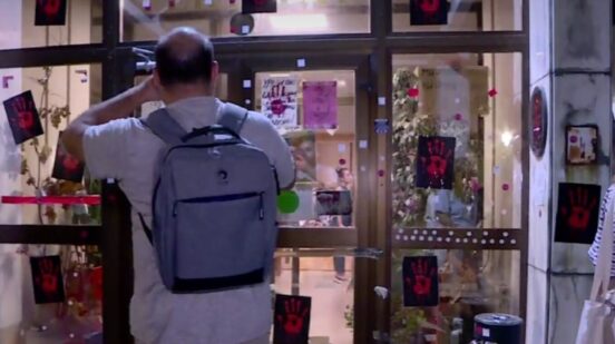 Društvo „Novi Sad se umiriti ne može“: Na roletni sedišta SNS okupljeni ostavili tragove crvenih šaka i broj 16 Nedeljnik.rs