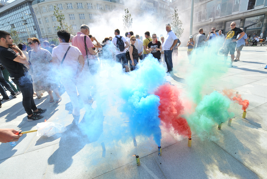 Politika Verbalni sukob, guranje, plišani prasići na ražnju i baklje: Kako je proteklo otvaranje Trga Republike Nedeljnik.rs