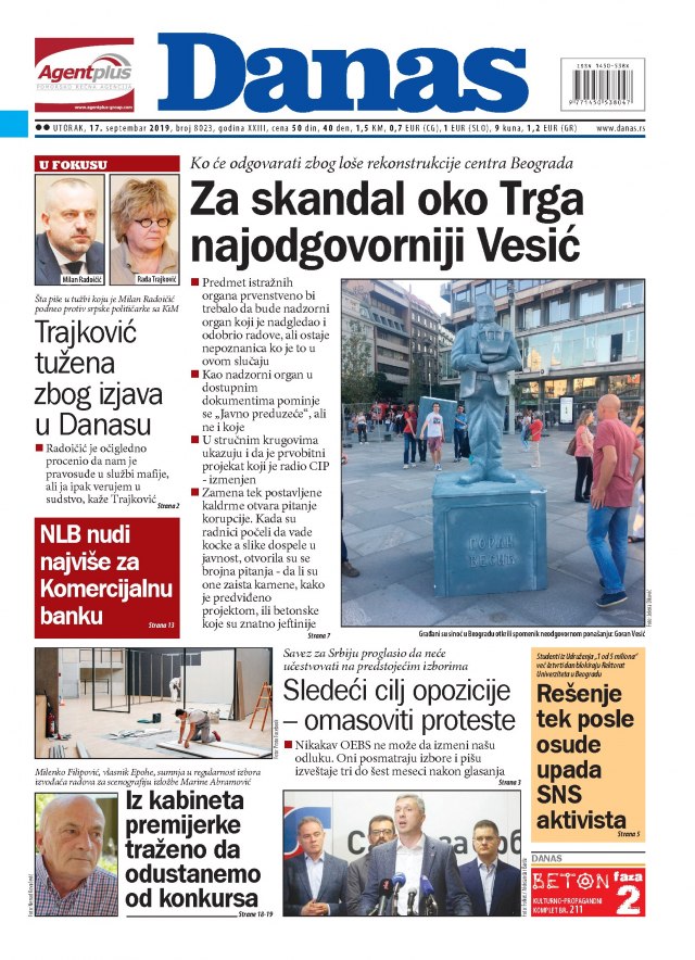 NASLOVNE STRANE DNEVNIH NOVINA: