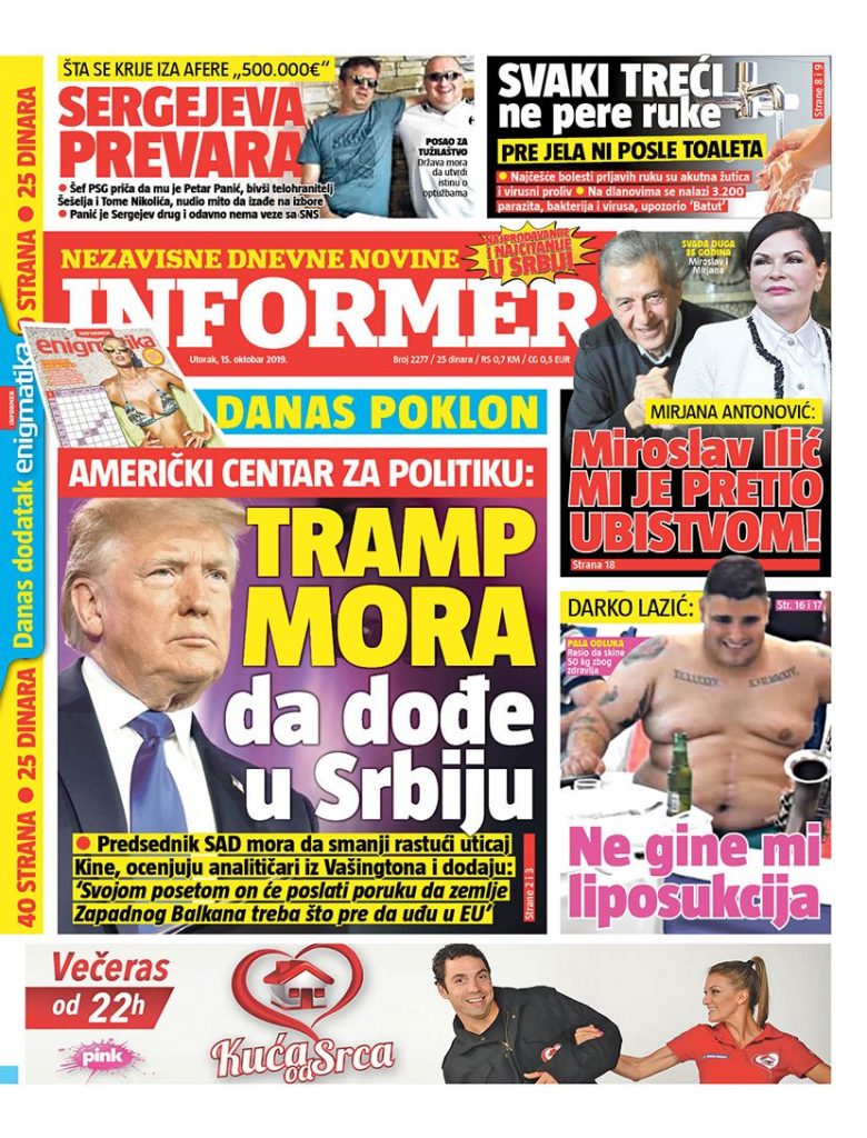 NASLOVNE STRANE DNEVNIH NOVINA: