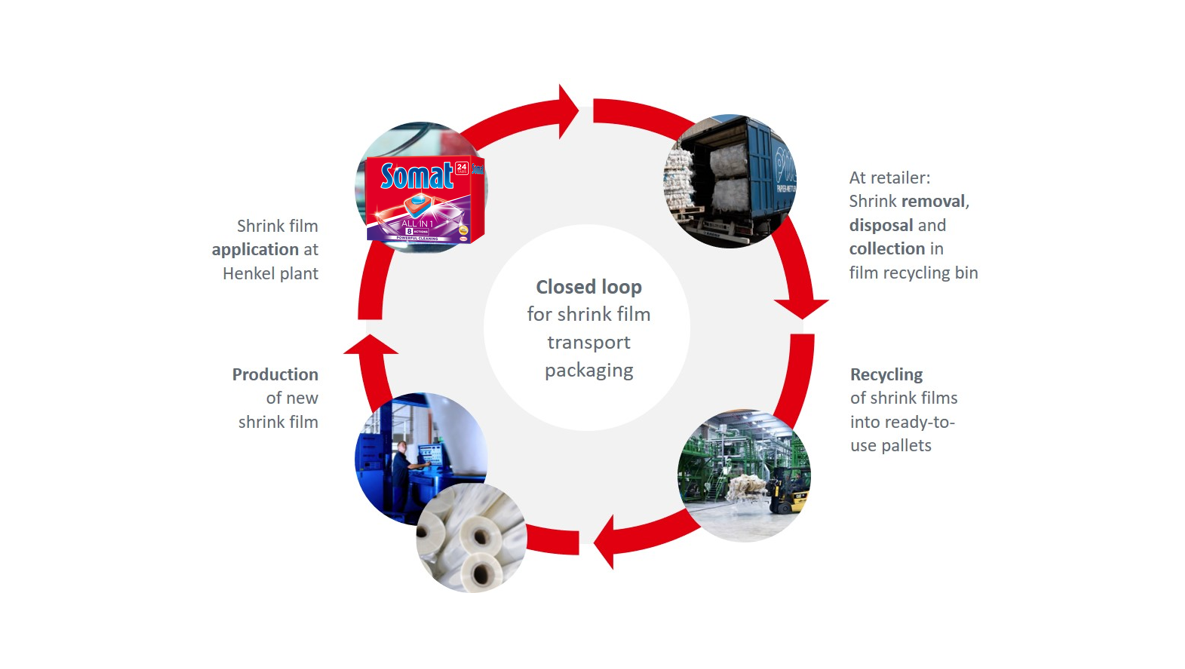 Transportna ambalaža mora da ispuni različite standarde: Mora biti izdržljiva i visokog kvaliteta, jer se njome obmotavaju i čuvaju Henkelovi proizvodi na putu od proizvodnih pogona do polica prodavnica. „Nova streč folija za Somat je još jedan korak u našoj posvećenosti održivom pakovanju i cirkularnoj ekonomiji. Sadrži više od 50 odsto polietilena recikliranog nakon korišćenja od strane stanovništva i u isto vreme obezbeđuje zatvoren krug za ovu vrstu pakovanja,“ objašnjava Karsten Bertram, direktor međunarodnog razvoja pakovanja za proizvode za mašinsko pranje sudova u Henkelovoj poslovnoj jedinici Deterdženti i kućna hemija.