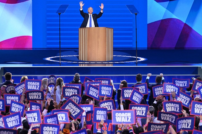 „Svi smo ovde večeras iz jednog jednostavnog razloga: Volimo ovu zemlju“, rekao je Valz dok su hiljade delegata držale transparente na kojima je pisalo „Trener Volc“.