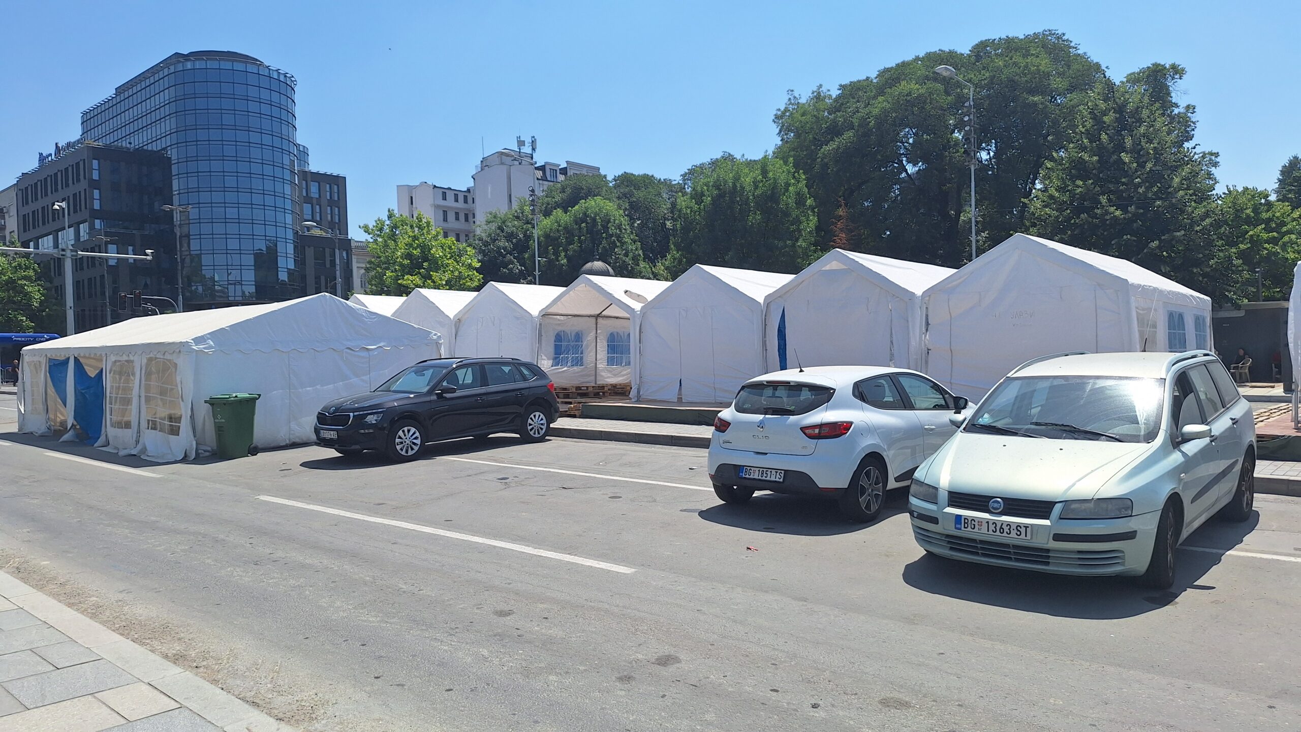Bitna promena u odnosu na prošli put kad smo izveštavali o ovoj temi jeste što je konačno moguće proći vozilom između šatora, premda je ulica i dalje blokirana, a radnici javnih preduzeća i dalje vrše radove na stazi ispred Pionirskog parka i Dečanskoj ulici ispred Istorijskog muzeja Srbije.