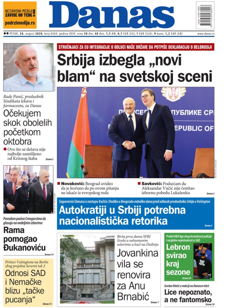 NASLOVNE STRANE DNEVNIH NOVINA: