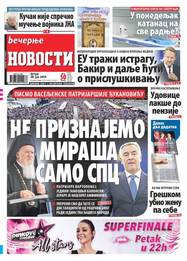 NASLOVNA STRANA AKTUELNOG NEDELJNIKA, DIGITALNO IZDANJE DOSTUPNO JE NA NOVINARNICI