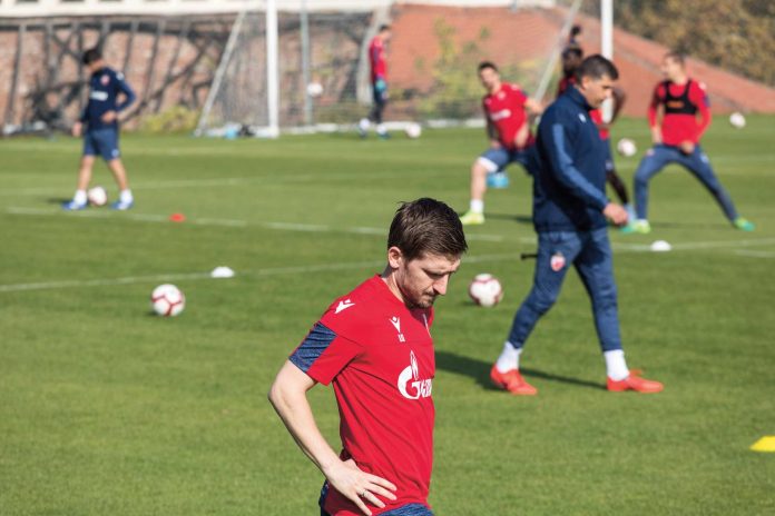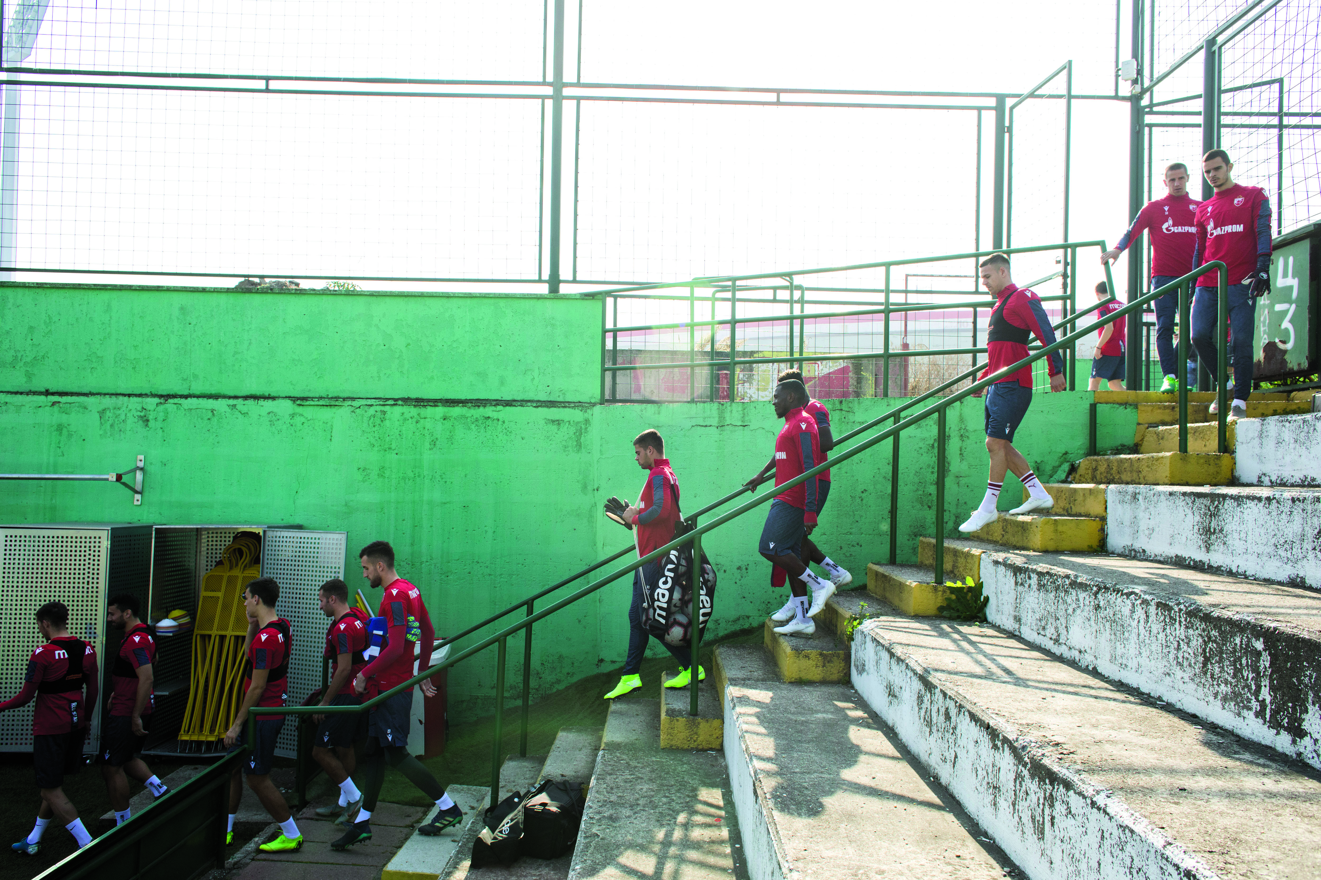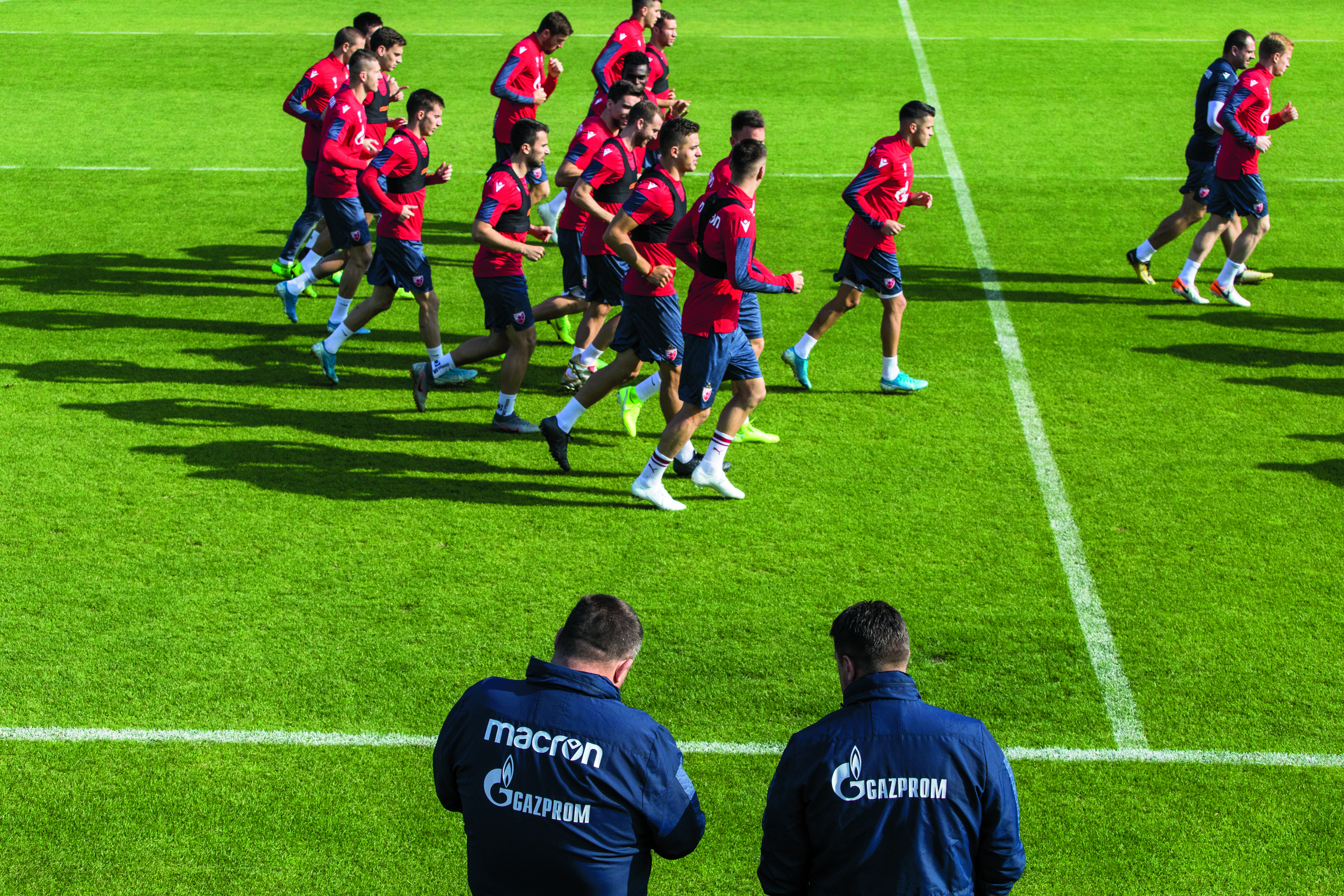 Žamor različitih jezika i govor tela koji svi razumeju. U hladu iza gola, podno ograđenog gradilišta, jednog tenka i severne tribine stadiona „Rajko Mitić“, fudbaleri Crvene zvezde ispraćaju miholjsko leto sa praga novembra.