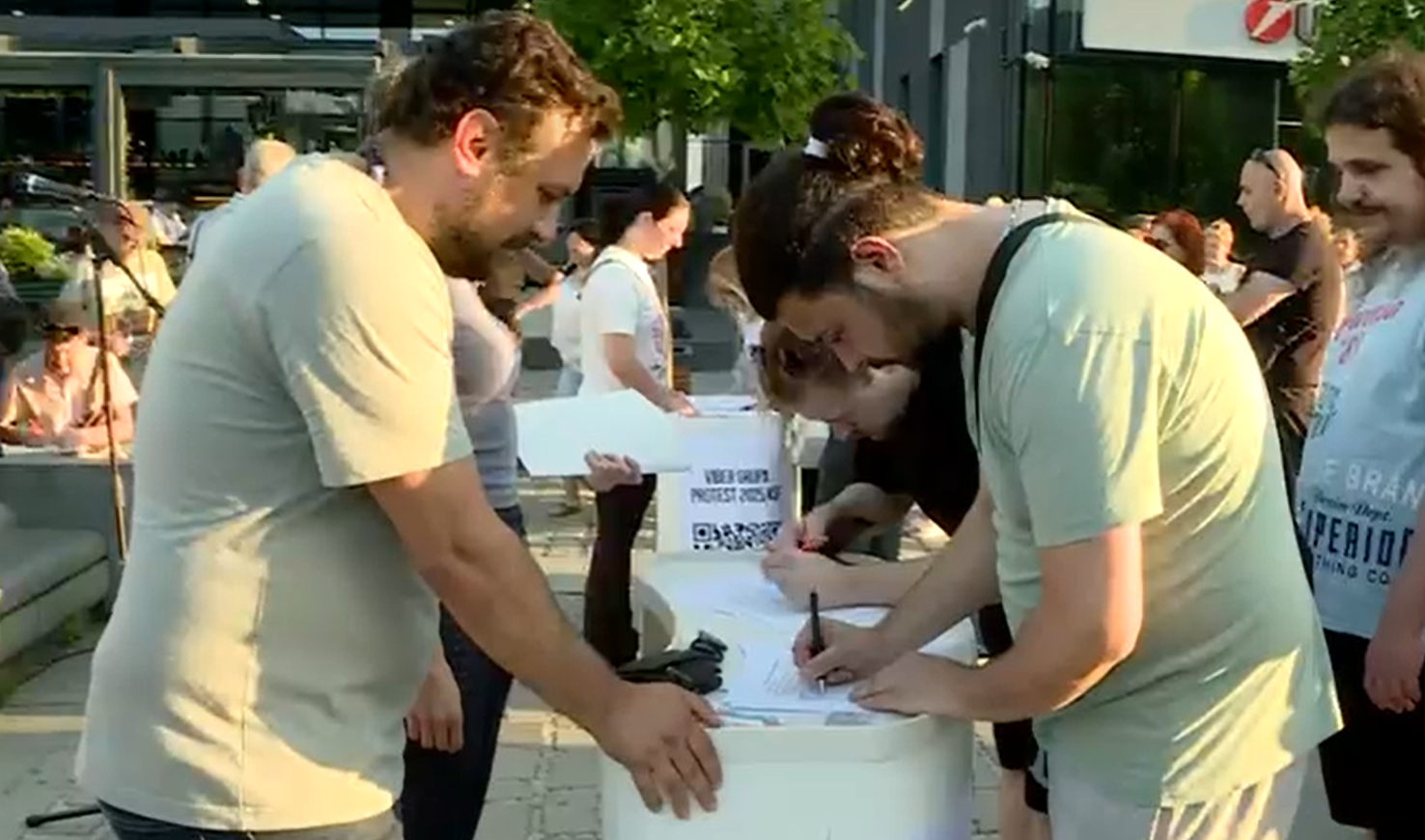 Veliki broj građana se odazvao pozivu. Postavljen je pult na kome građani mogu da potpišu peticiju za raspisivanje vanrednih parlamentarnih izbora.
