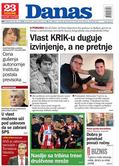 NASLOVNE STRANE DNEVNIH NOVINA: