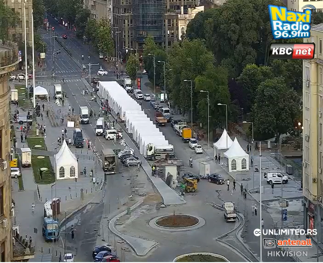 Deo belih šatora, koji se ispred Doma Narodne skupštine nalazi od sredine aprila, rasklopljen je tokom popodneva, a jedna od saobraćajnih traka Trga Nikole Pašića gotovo je u potpunosti oslobođena.