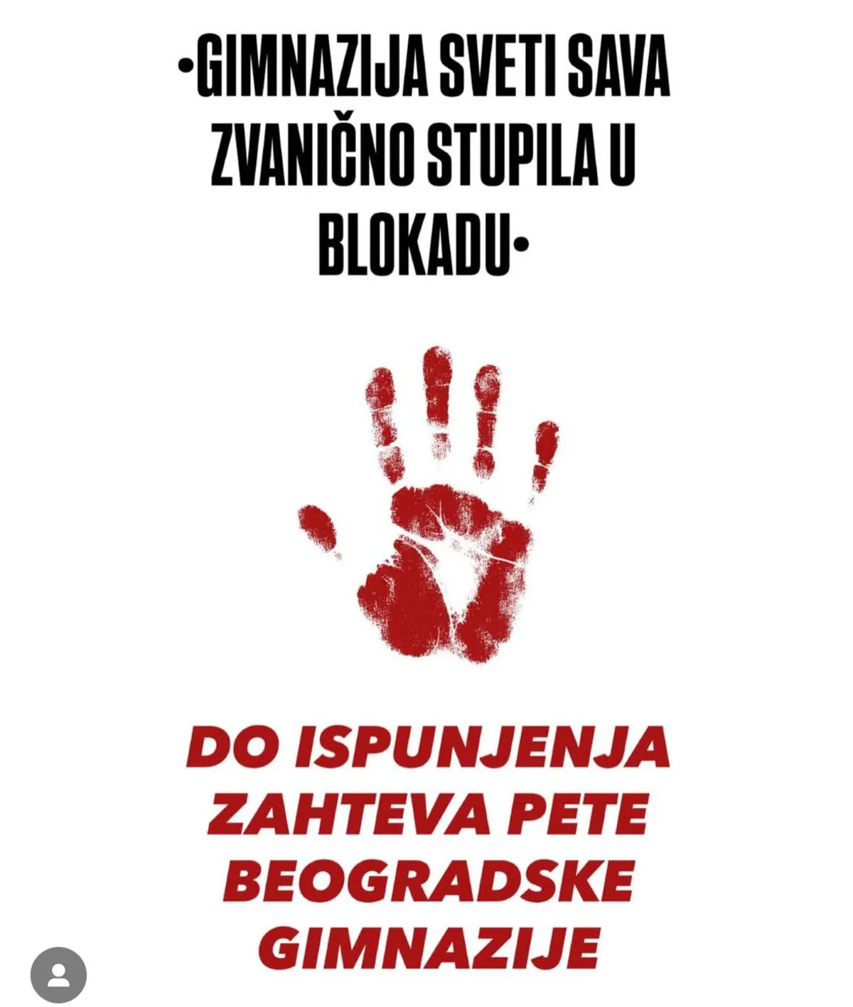 Učenici u blokadi Gimnazije „Sveti Sava“ objavili su na svom instagram-nalogu da je njihova škola zvanično stupila u blokadu.