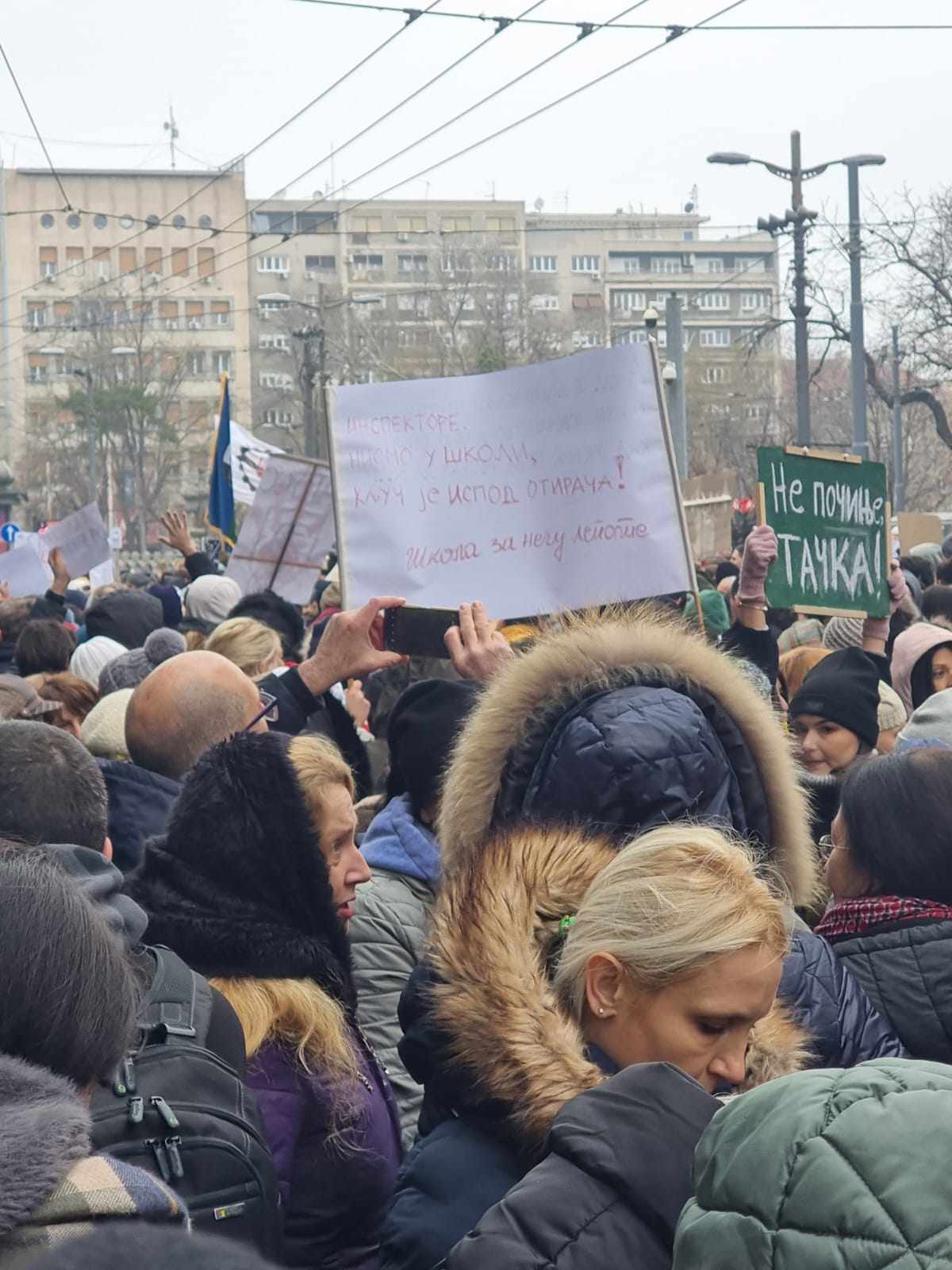 „Prosvetni radnici žele da pokažu dostojanstvo, odlučnost i hrabrost da se suprotstave vlastima koje im nude danajske darove dok ih paralelno s tim potkradaju i ponižavaju. Prosvetni radnici žele i da nedvosmisleno ostanu uz studente u borbi za uspostavljanje vladavine prava i suzbijanje sistemske korupcije, saopštio je ranije sindikat.