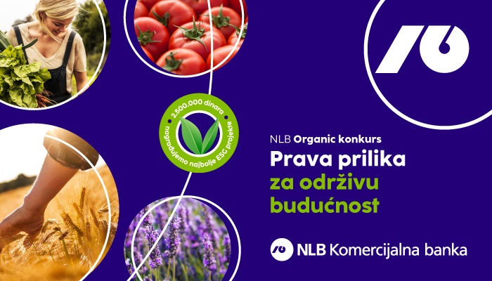 Podrška organskim proizvođačima poslednjih 12 godina dolazi kroz Organic konkurs NLB Komercijalne banke, koji za cilj ima pomoć u unapređenju poslovanja. Prijavljivanje za 12. ciklus Organic konkursa NLB Komercijalna banke otvoreno je do 2. maja, a prijave se šalju na e-mail: organic@nlbkb.rs s naznakom „Prijava za 12. Organic konkurs”.