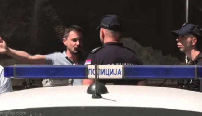 On se ispred stanice PU u Majke Jevrosime nalazio sa grupom građana okupljenih zbog hapšenja dvoje građana kod Doma Vojske.
