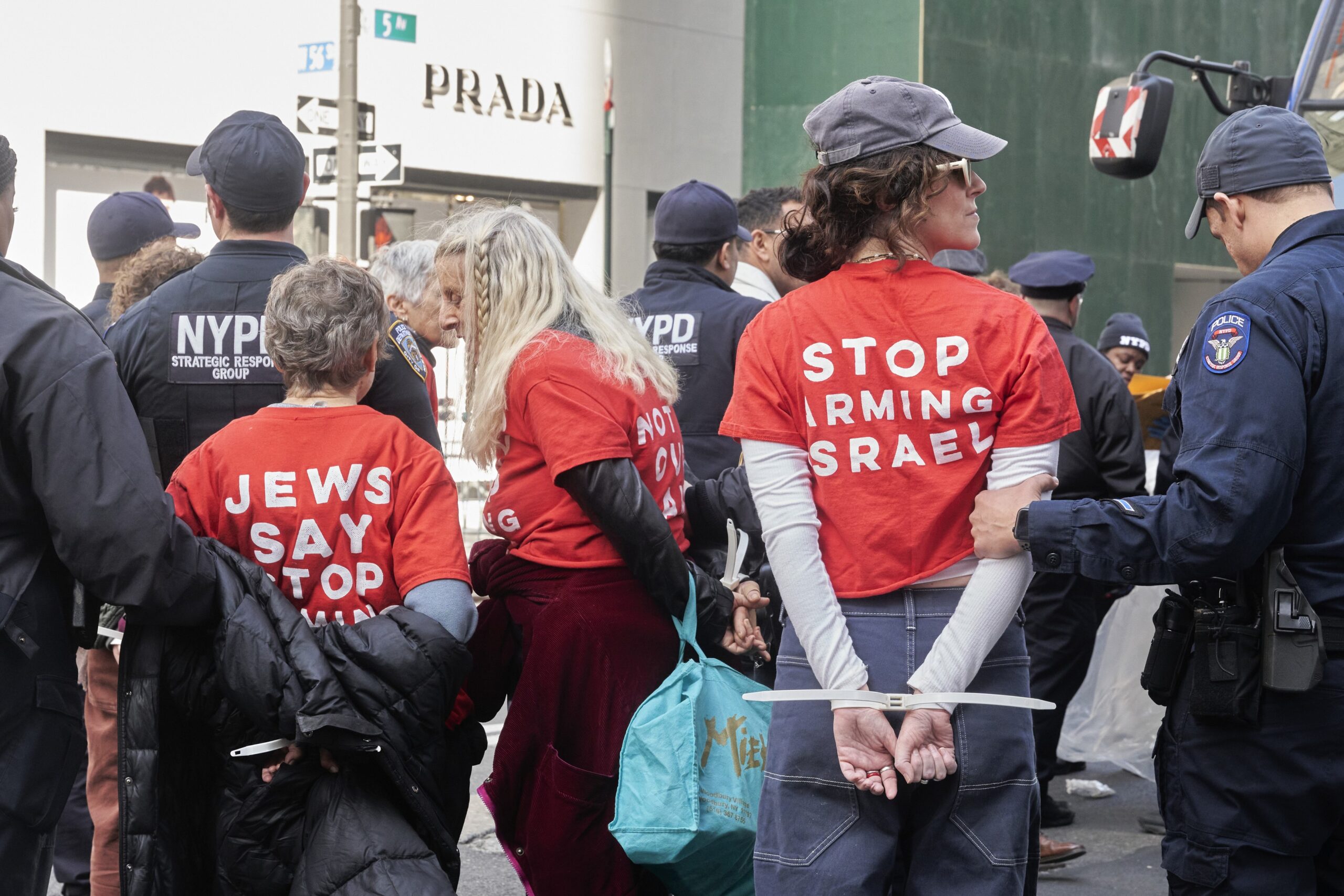 Na protestu je bilo više od 250 ljudi, nosili su majice sa natpisima „Jevreji kažu da prestanete da naoružavate Izrael“. A onda je njujorška policija krenula da ih hapsi.